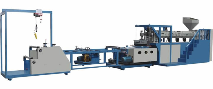塑料片材擠出機的起泡過程一般可分為兩個階段:一是在塑料熔體或液體中形成大量均勻細密的泡核;二是塑料繼續膨脹成所需的泡體結構,隨后固化定型將泡體結構固定下來,得到泡沫。